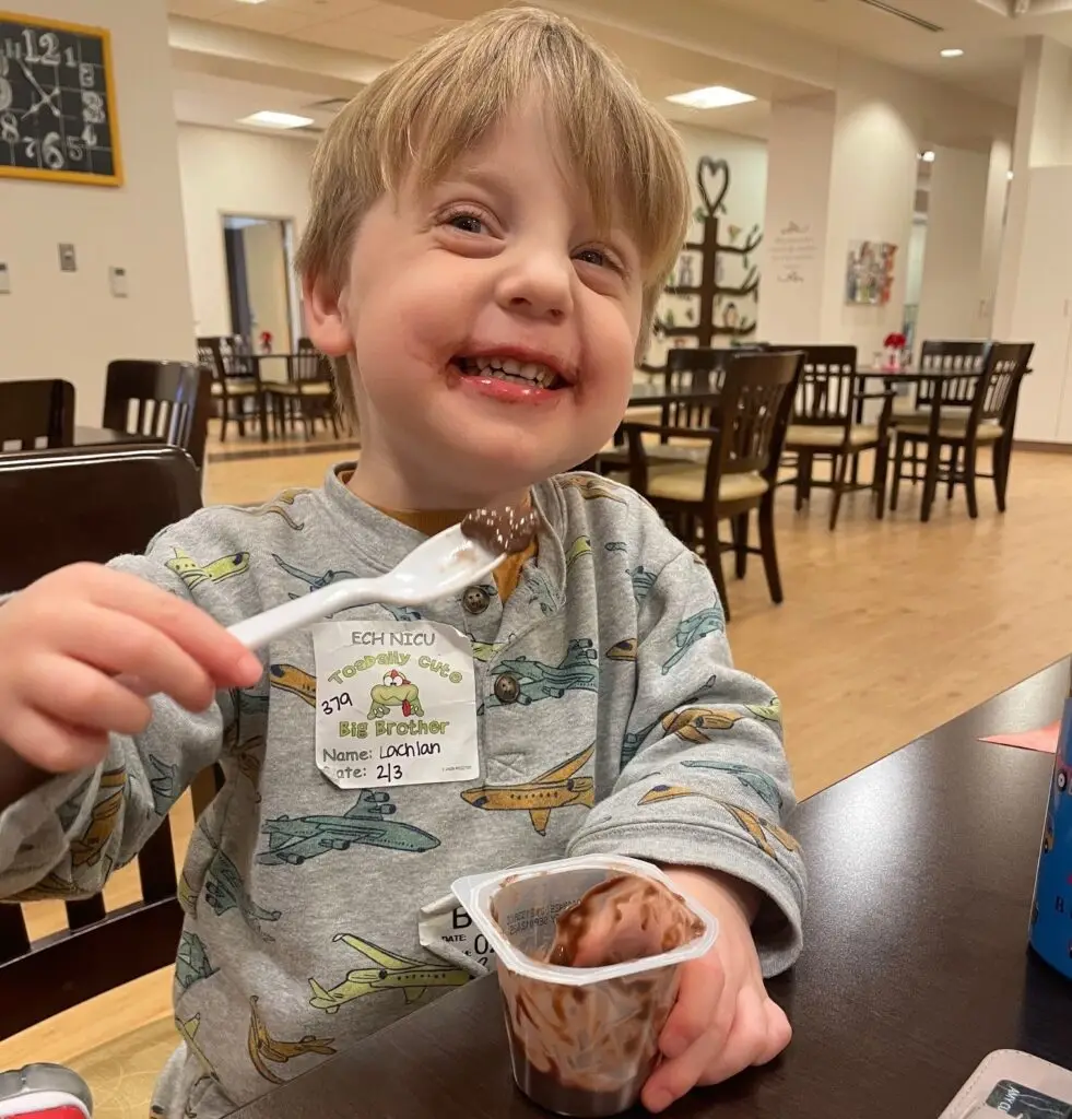 Lachlan enjoying a snack during his family’s stay at the Ronald McDonald House.