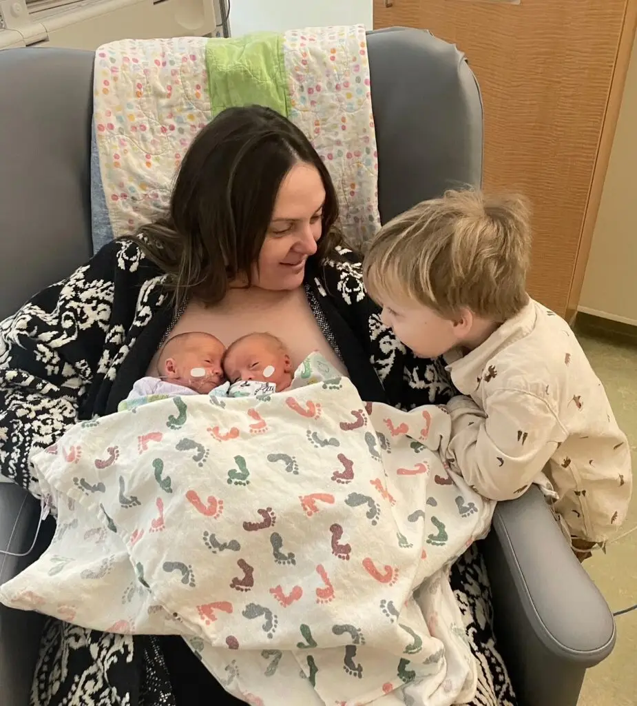 Amy with her children, Noelle, Evelyn, and Lachlan. When the twins were born prematurely, Amy stayed 80 nights at the Ronald McDonald House to remain close to their NICU care.