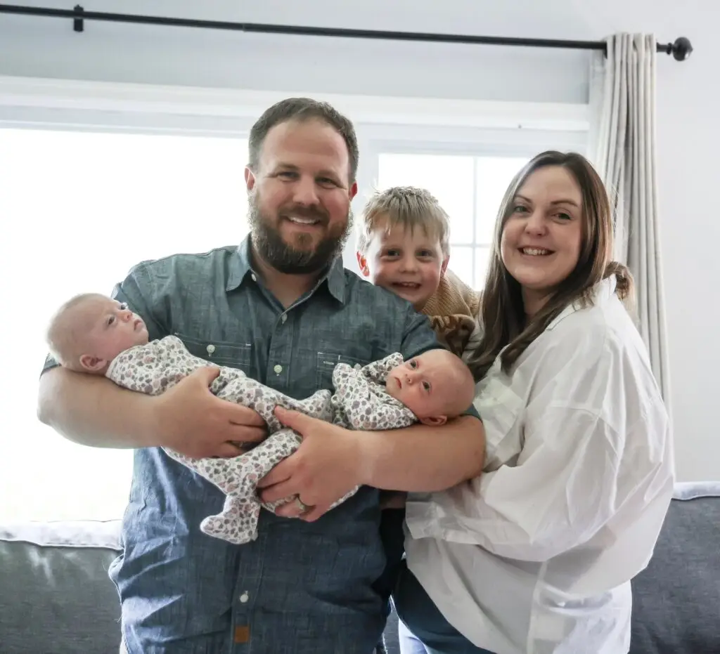 Amy and Jared with their family during the twins’ NICU journey in Toledo.